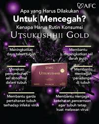 Utsukushhii Gold (AFC Japan) adalah suplemen kesehatan premium dengan formula triple probiotik, salmon DNA, dan antioksidan tinggi (black garlic, resveratrol) untuk meningkatkan kesehatan kulit, pembuluh darah, dan pencernaan. Suplemen ini didesain untuk anti-aging, detoksifikasi liver, meningkatkan sistem imun, dan mendukung pencegahan sel kanker.